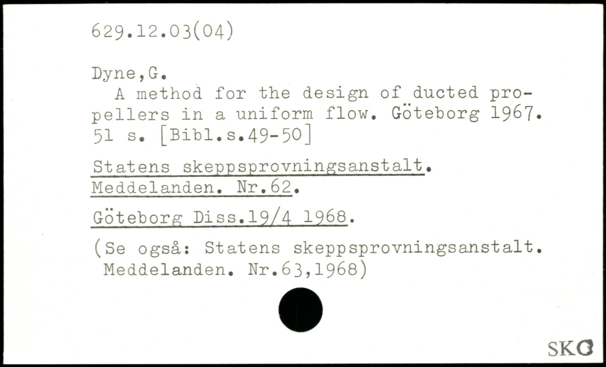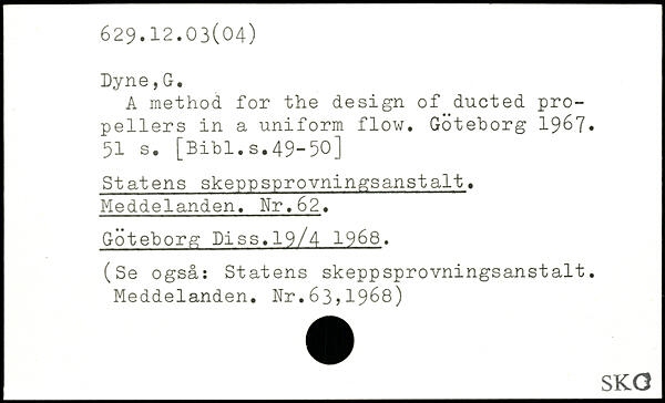 A method for the design of ducted propellers in a uniform flow. Göteborg 1967