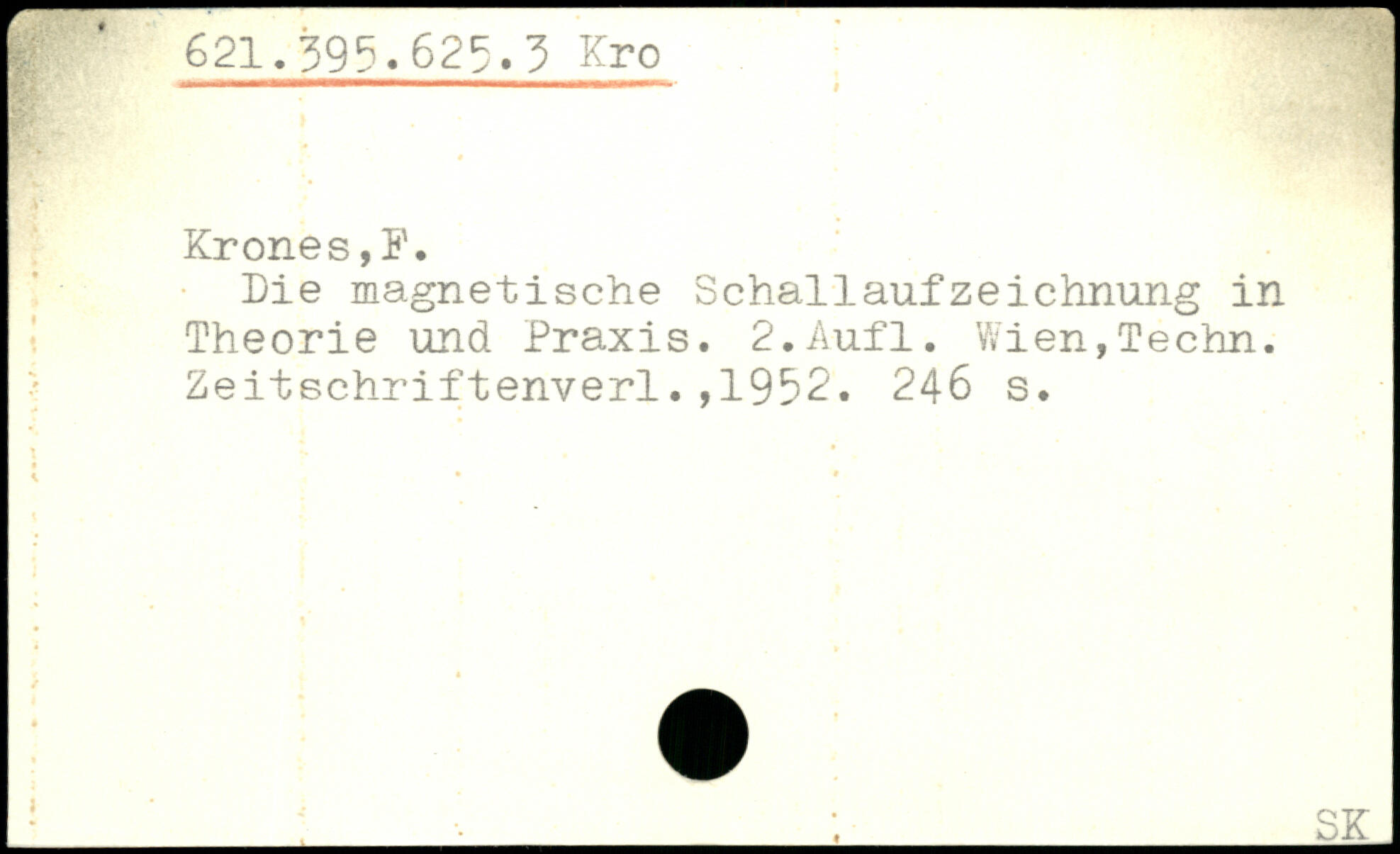 Die magnetische SchallaufZeichnung in Theorie und Praxis. 2,Aufl. Wien,Techn. Zeitschriftenverl.,1952.