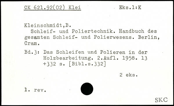 Schleif- und Poliertechnik. Handbuch des gesamten Schleif- und Polierwesens. Berlin, Cram.