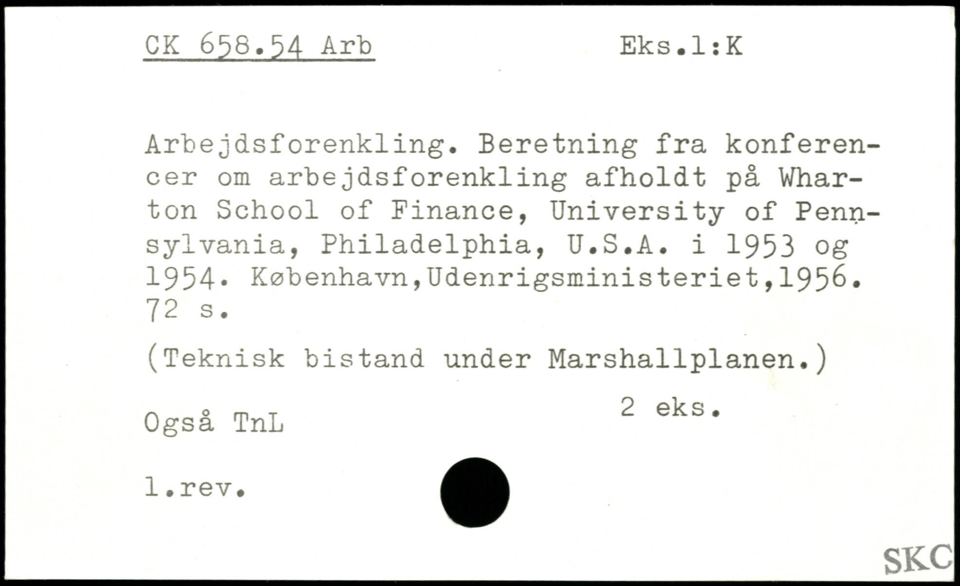 Arbejdsforenkling. Beretning fra konferencer om arbejdsforenkling afholdt på Wharton School of Finance, University of Pennsylvania, Philadelphia, U.S.A. i 1953 og 1954.