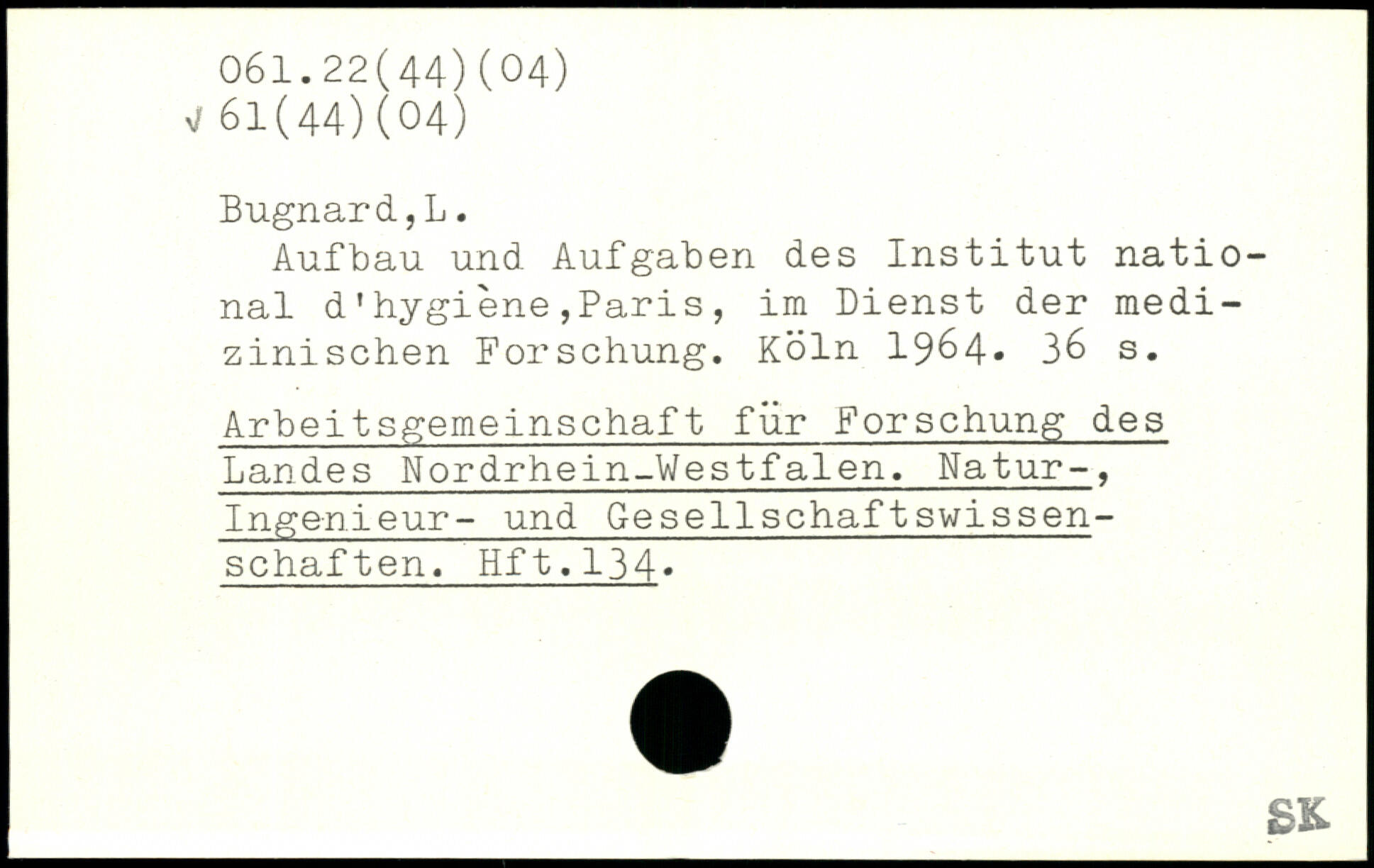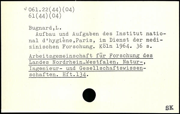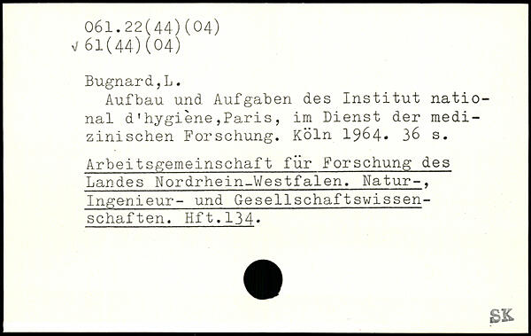 Aufbau und Aufgaben des Institut national d'hygiène,Paris, im Bienst der medizinischen Forschung.
