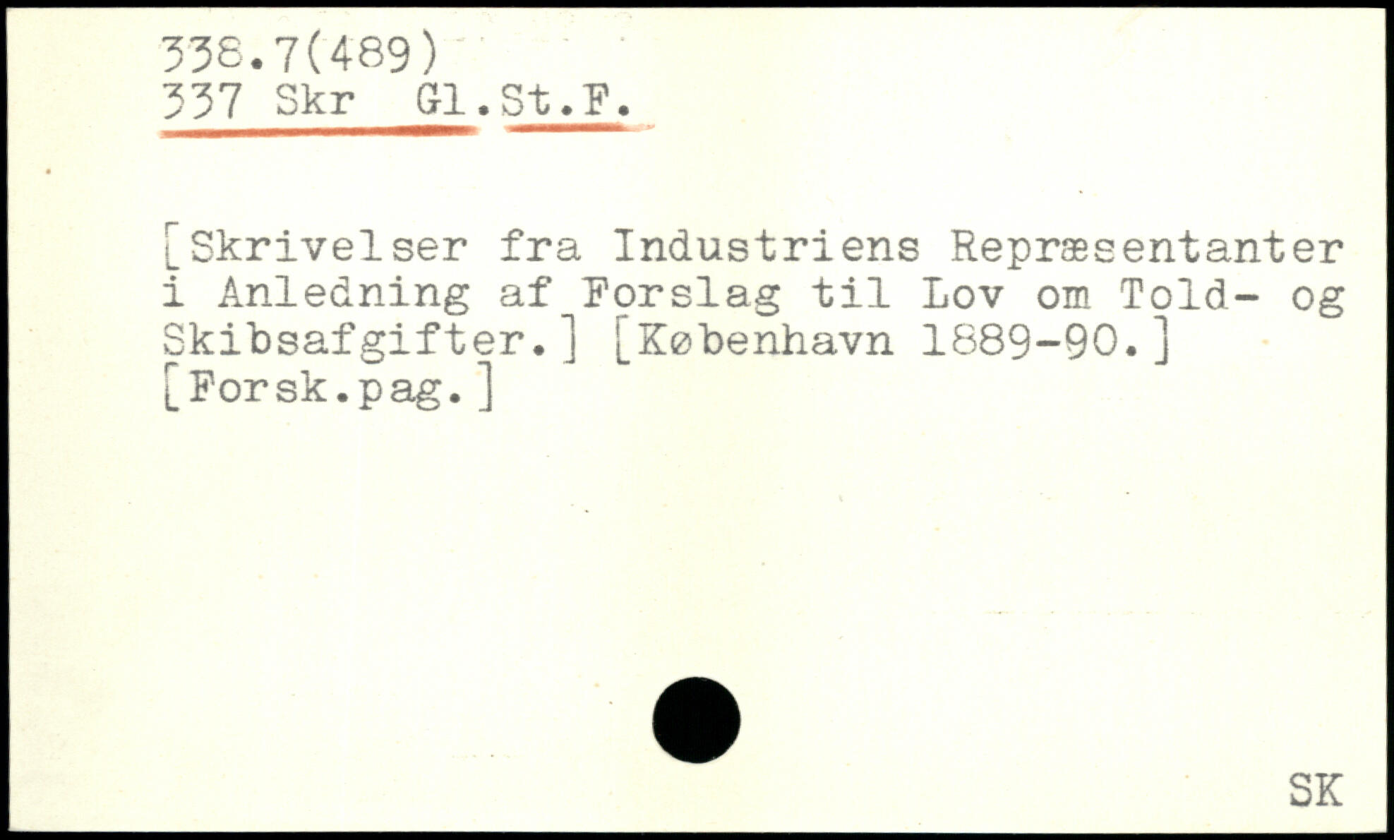 [Skrivelser fra Industriens Repræsentanter i Anledning af Forslag til Lov om Told- og Skibsafgifter.]