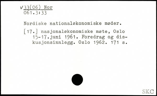 Nordiske nationalokonomiske moder. [17.] nasjonalokonomiske mote, Oslo 15-17,juni 1961. Föredrag og diskus jonsinnlegg. Oslo 1962.