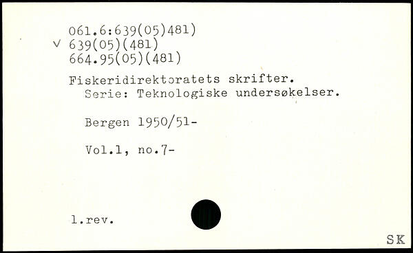 Fiskeridirektoratets skrifter. Serie: Teknologiske undersøkeiser.