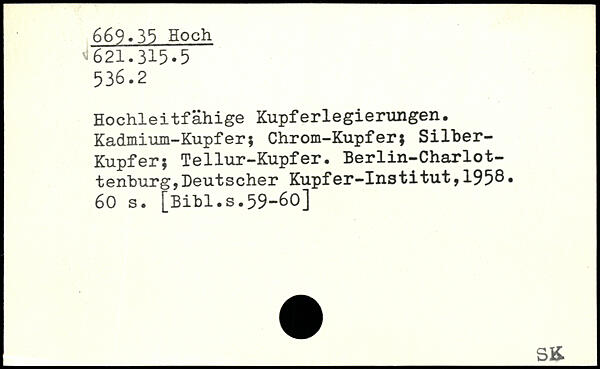 Hochleitfähige Kupferlegierungen. Kadmium-Kupfer; Chrom-Kupfer; Silber-Kupfer; Tellur-Kupfer.