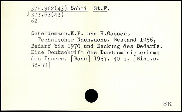 Technischer Nachwuchs. Bestand 1956, Bedarf bis 1970 und Deckung des Bedarfs. Eine Denkschrift des Bundesministeriums des Innerno [Bonn] 1957.
