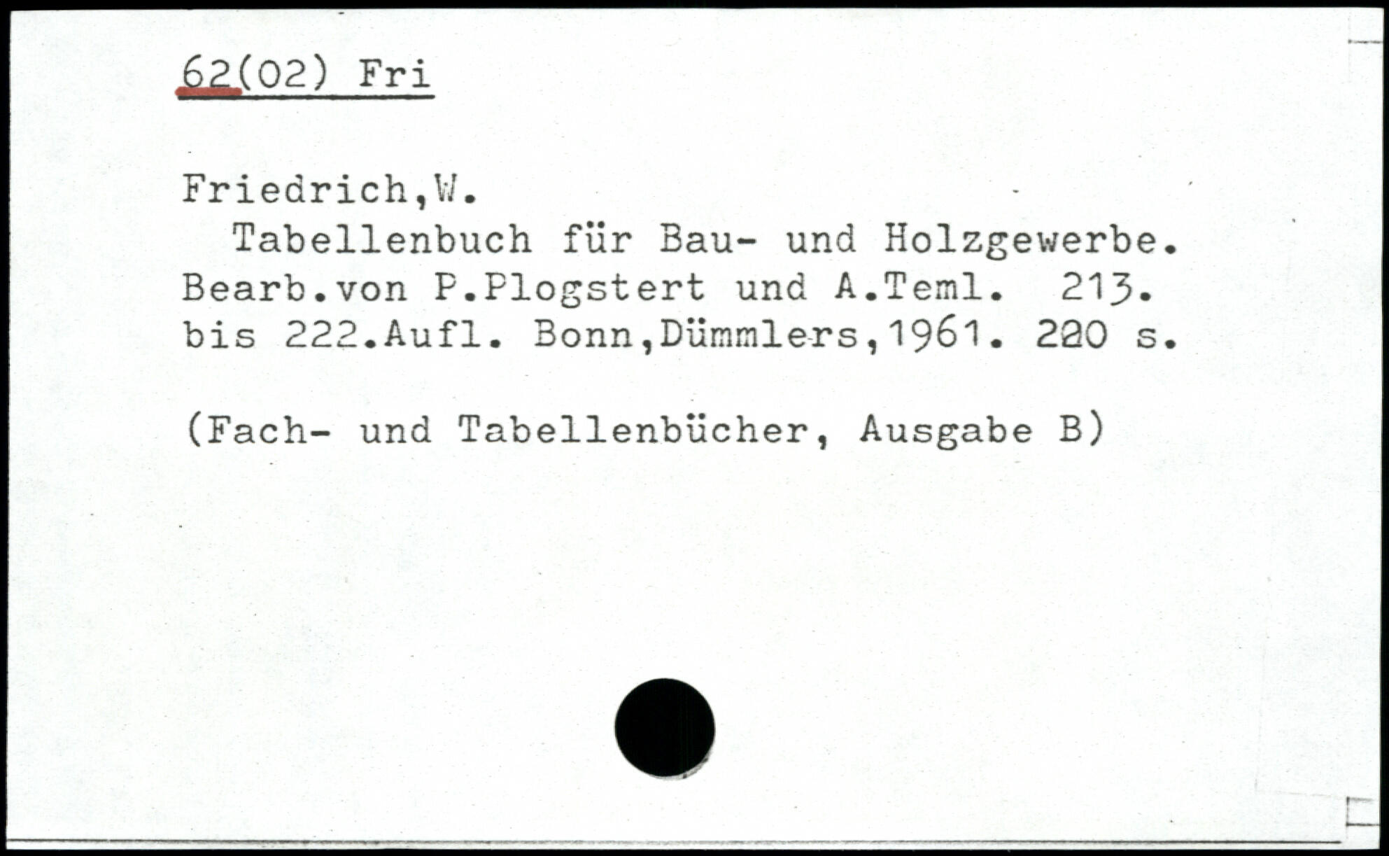 Tabellenbuch für Bau- und Holzgewerbe. Bearb.von P.Plogstert und A.Teml. 213, bis