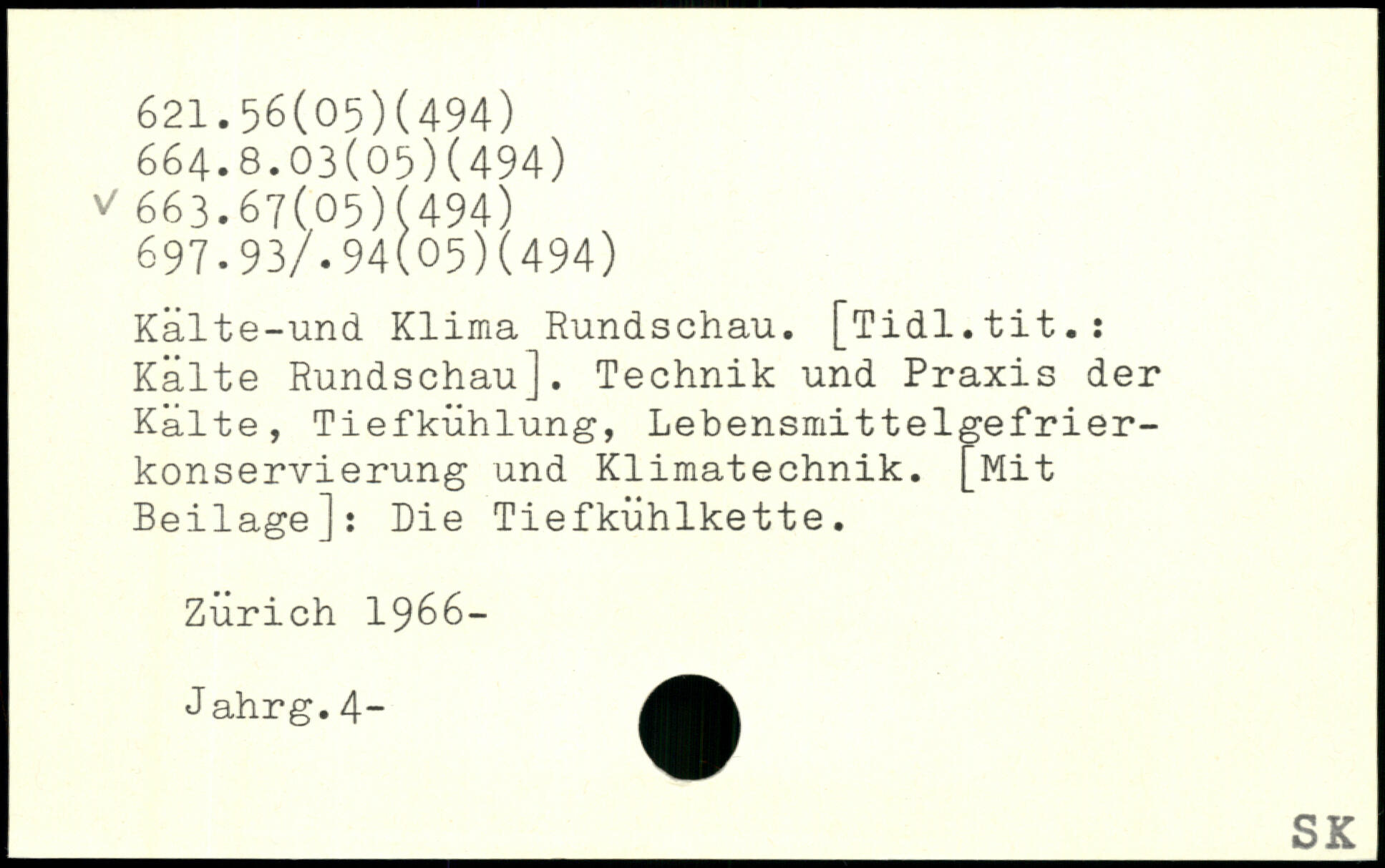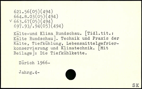Kälte-und Klima Rundschau. [Tidl.tit.ï Kälte Rundschau]. Technik und Praxis der Kälte, Tiefkühlung, Lebensmittelgefrierkonservierung und Klimatechnik. [Mit Beilage]: Die Tiefkühlkette. Zürich 1966- Jahrg.4-