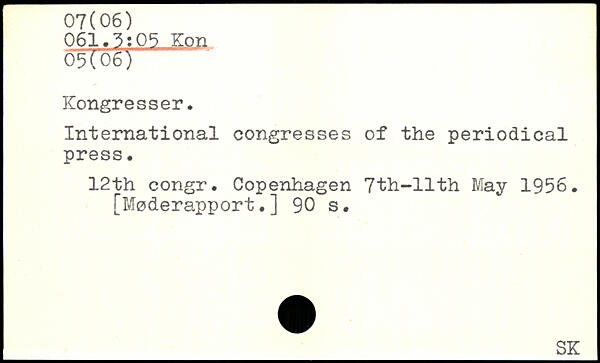 International congresses of the periodical press. 12th congr. Copenhagen 7th-llth May 1956. [Moderapport.]