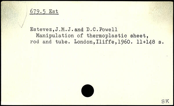 Estevez,and D.C. Powell Manipulation of thermoplastic sheet, rod and tube.