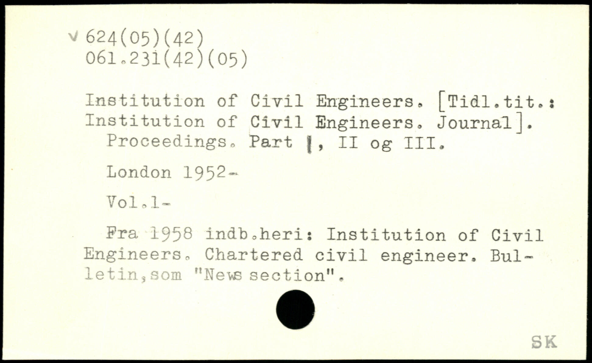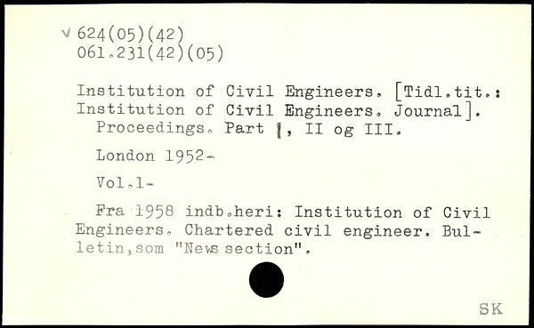 Institution of Civil Engineers, [Tidl.tit.! Institution of Civil Engineers. Journal]. Proceedingso Part j, II og III.
