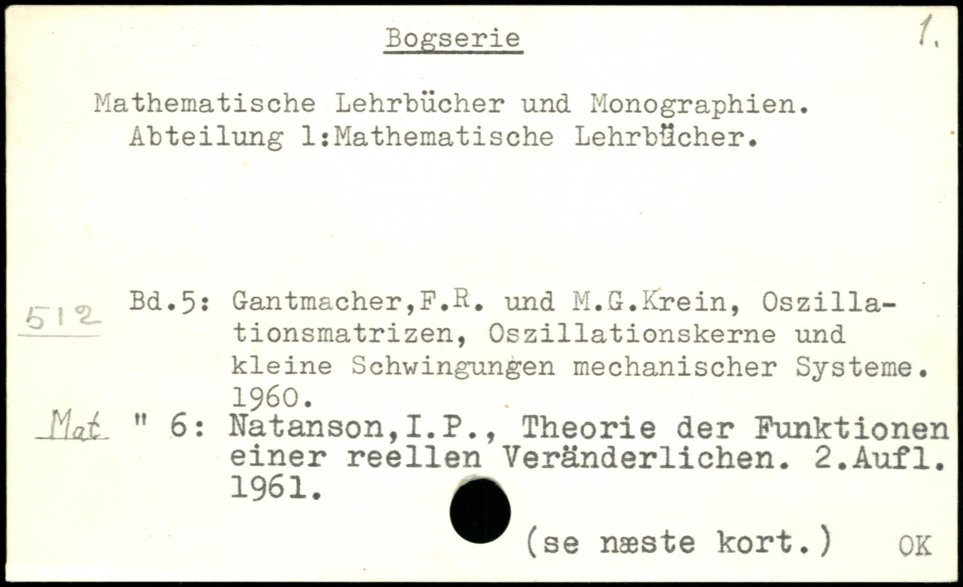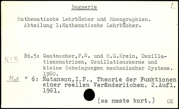 Bogserie i ^ Mathematische Lehrbücher und Monographien. Abteilung 1:Mathematische Lehrbücher.