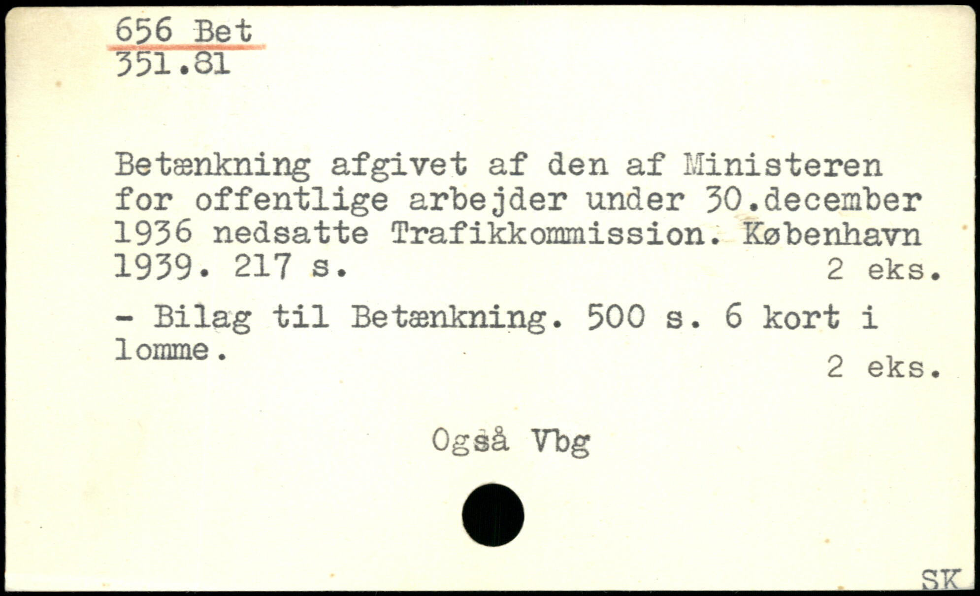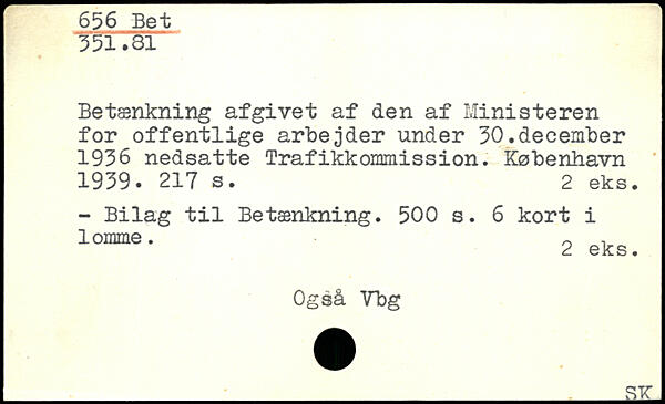 Betænkning afgivet af den af Ministeren for offentlige arbejder under 50.december 1956 nedsatte Trafikkommission.