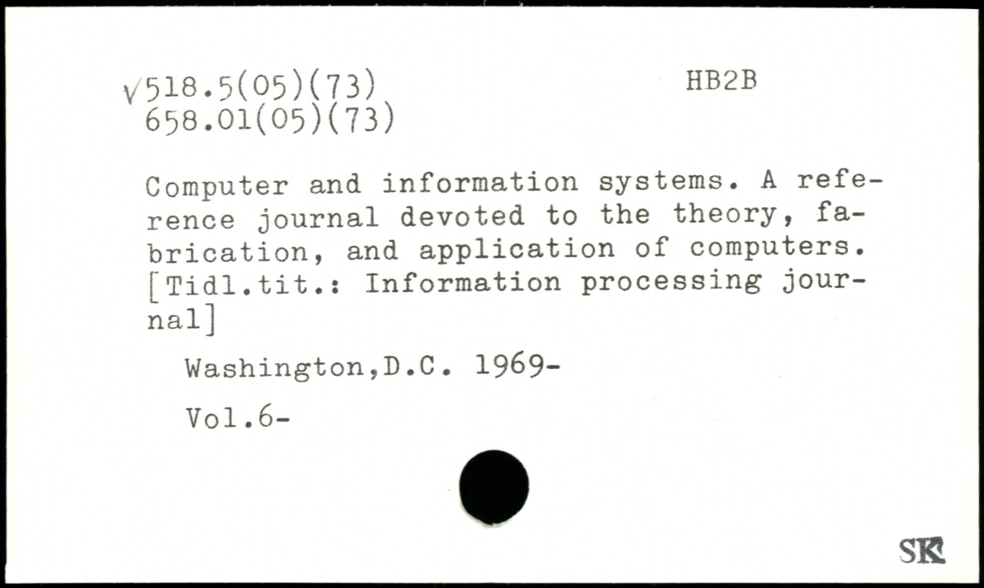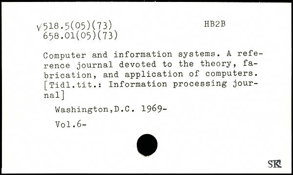 Computer and information systems. A reference journal devoted to the theory, fabrication, and application of computers.