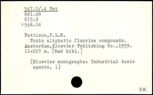 Toxic aliphatic fluorine compounds. Amsterdam,Elsevier Publishing Co,,1959