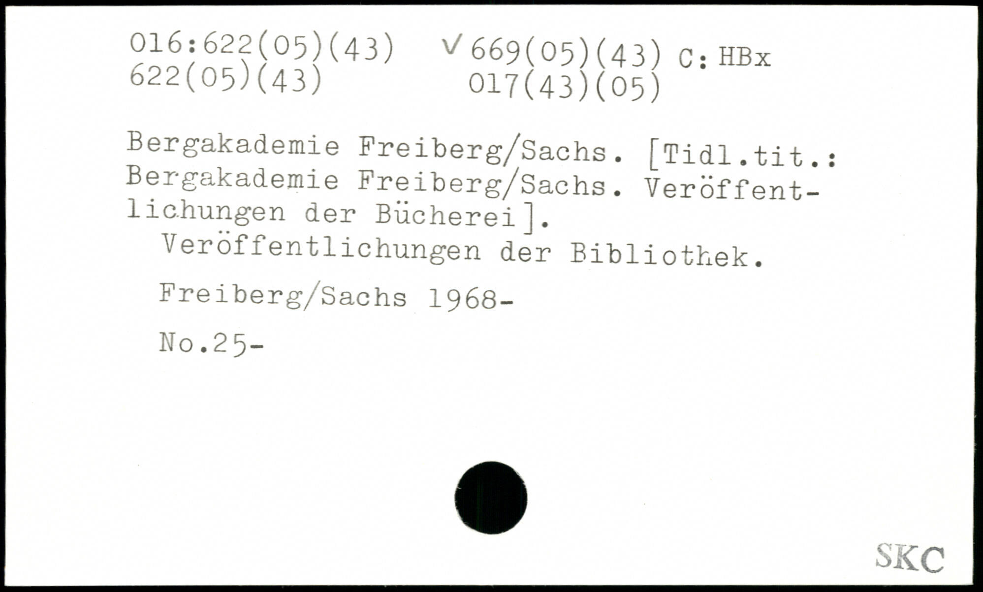 Bergakademie Freiberg/Sachs. [Tidl.tit.: Bergakademie Freiberg/Sachs. Veröffentlichungen der Bücherei]. Veroffentlichungen der Bibliothek. Freiberg/Sachs 1968- No.25- j ,-vC