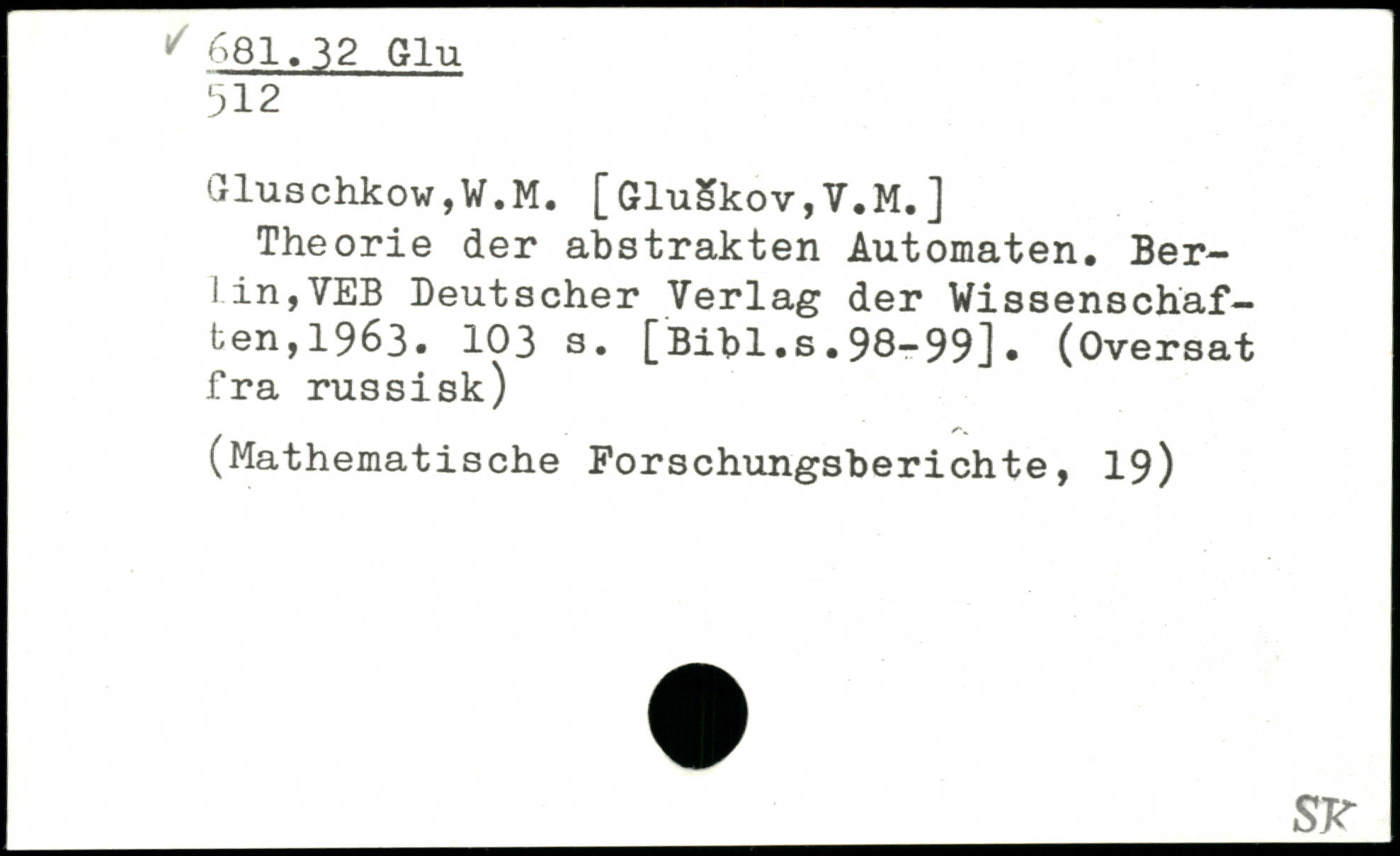 Gluschkow,W.M. [GluSkov, V.M. ] Theorie der abstrakten Automaten. Berlin, VEB Deutscher Verlag der Wissenschaften, 1963.