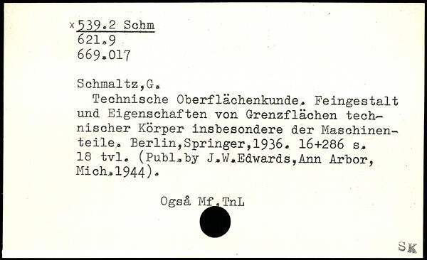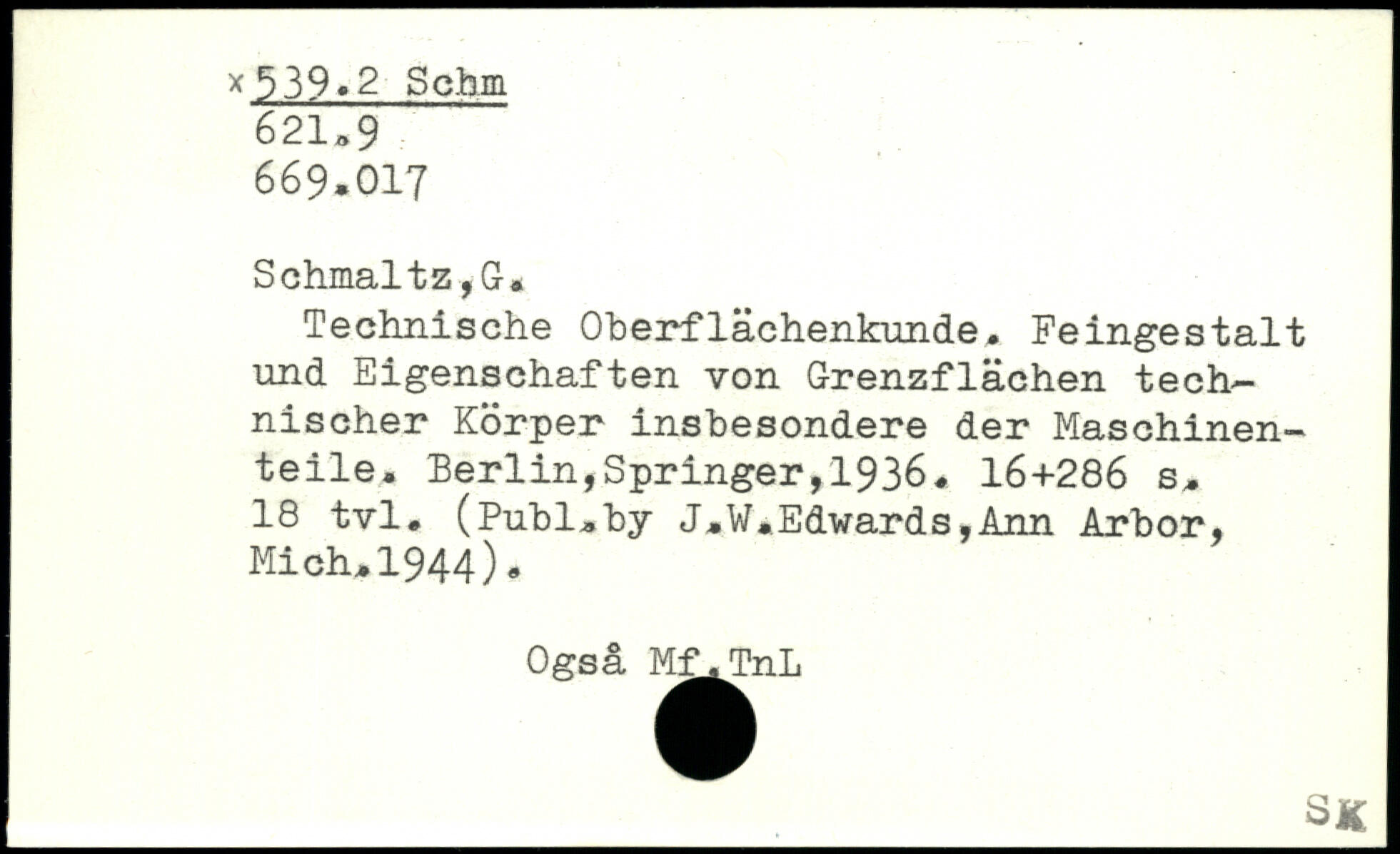 Technische Oberflächenkunde. Feingestalt und Eigenschaften von Grenzflächen technischer Körper insbesondere der Maschinenteile.