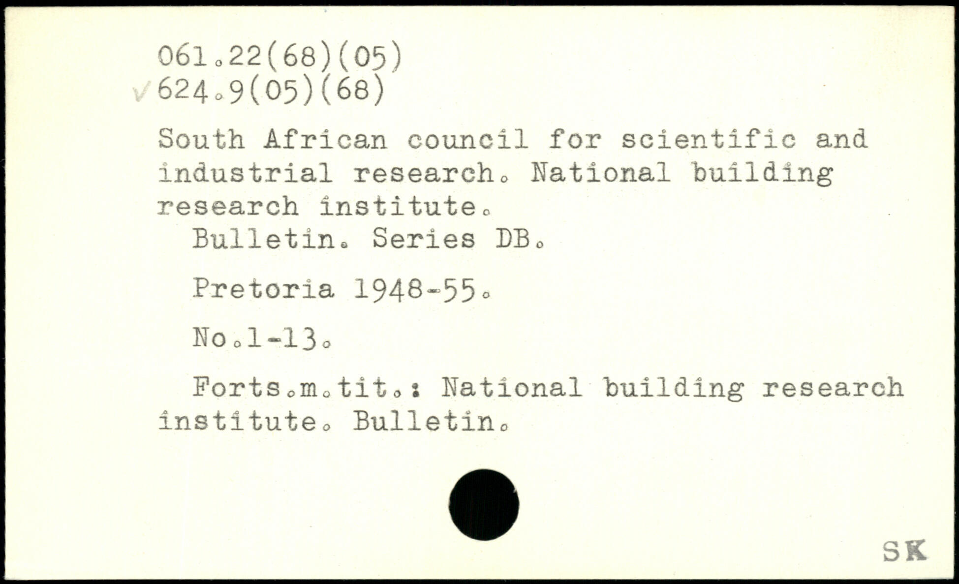 South African council for scientific and industrial research,, National building research instituteo Bulletin. Series DB0 Pretoria 1948-55. No o1-13. Ports oHio tit 0 : National building research instituteo Bulletin