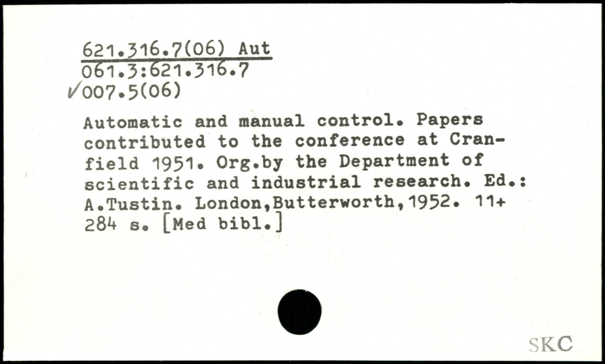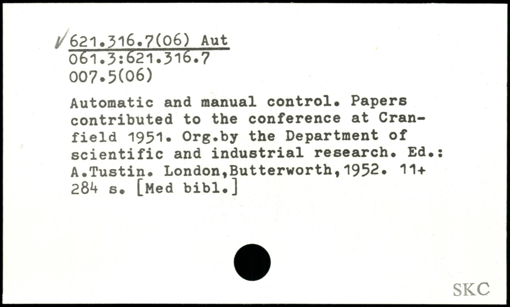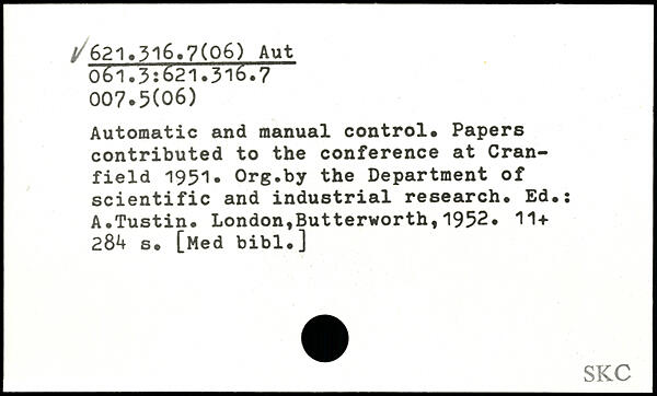Automatic and manual control, Papers contributed to the conference at Cran-field 1951. Org.by the Department of scientific and industrial research. Ed.: A.Tustin.