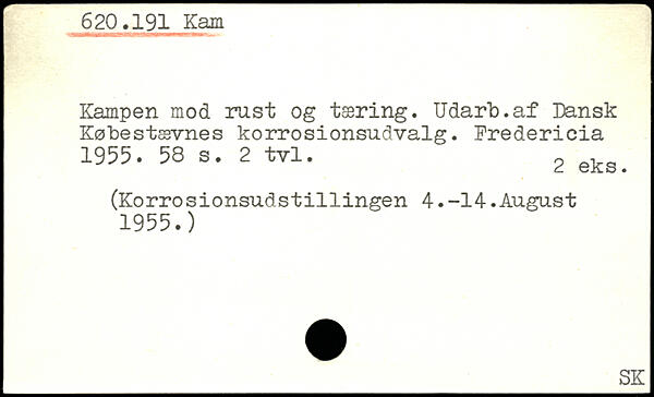 Kampen mod rast og tæring. Udart.af Dansk Købestævnes korrosionsudvalg. Fredericia 1955.