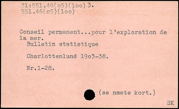 Conseil permanent...pour 1 Exploration de la mer. Bulletin statistique Charlottenlund 19o3-38. Nr.1-28.