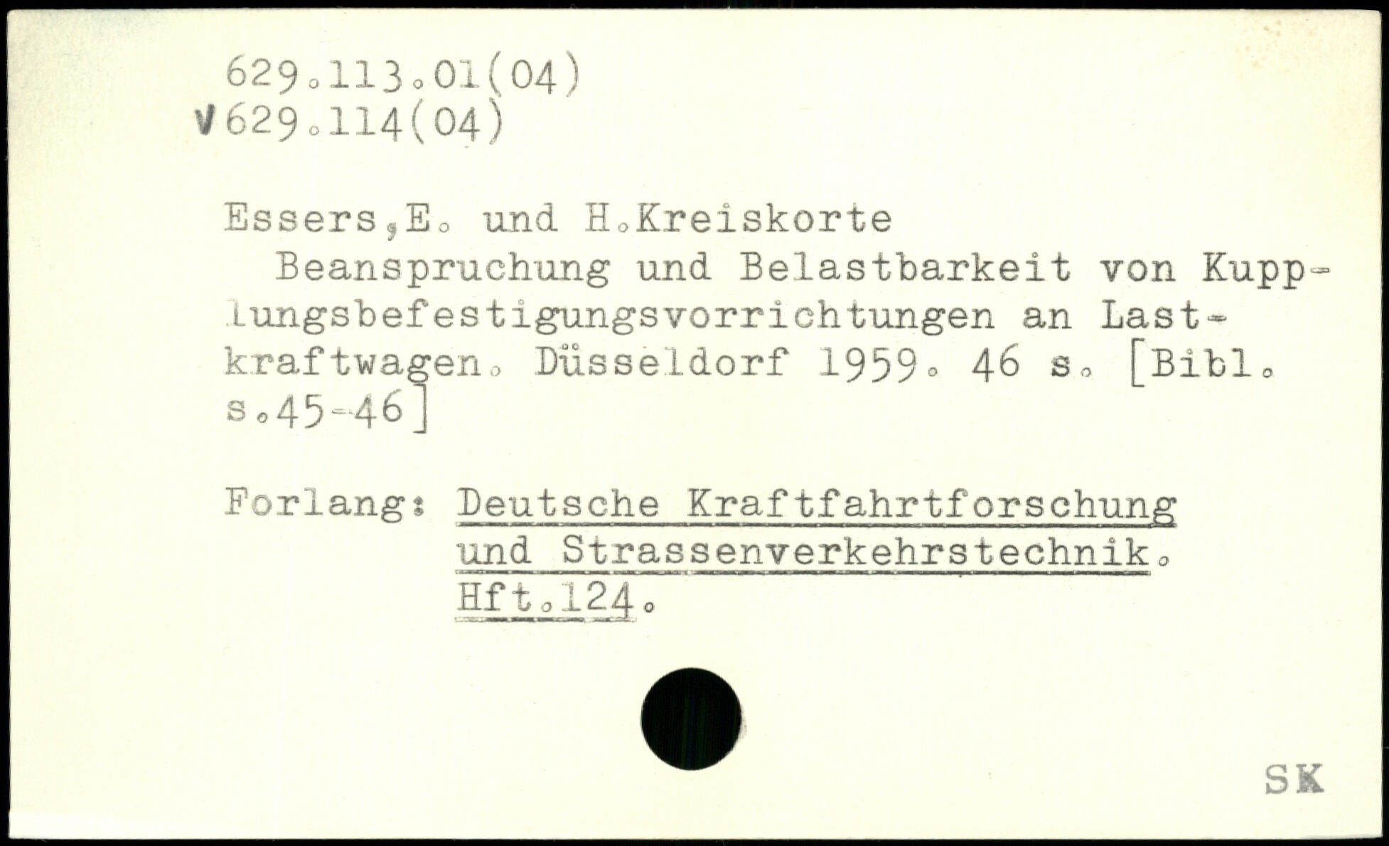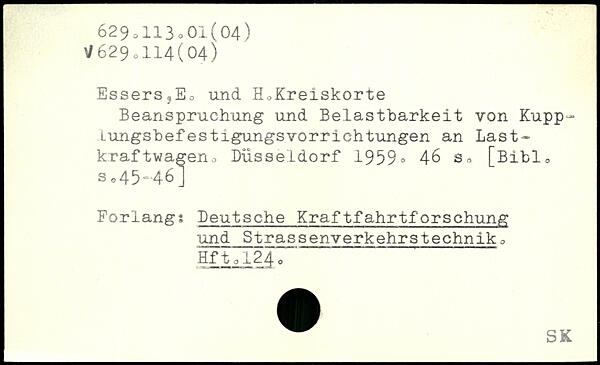 Essers3Eo und HoKreiskorte Beanspruchung und Belastbarkeit von Kupp-Lungsbefestigungsvorriehtungen an Last-kraftv/agen,, Düsseldorf 1959
