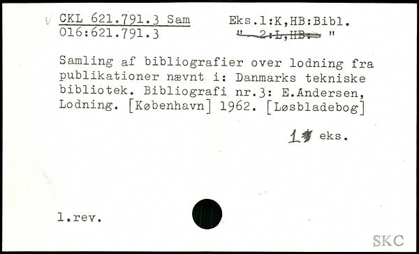 Samling1 af bibliografier over lodning fra publikationer nævnt i: Danmarks tekniske bibliotek. Bibliografi nr.3: E.Andersen, Lodning.