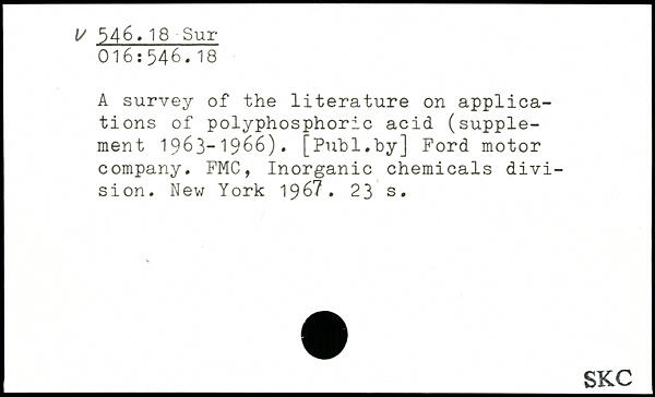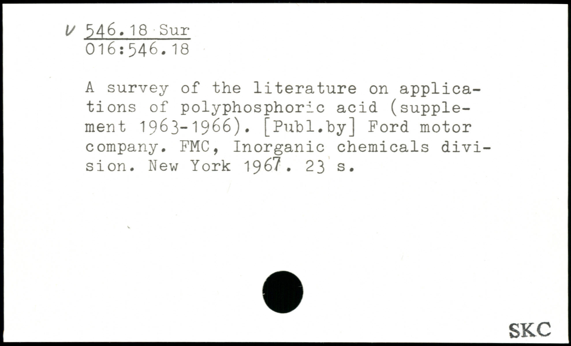 A survey of the literature on applications of polyphosphoric acid (supplement 1963-1966). [Puhl.hy] Ford motor company. FMC, Inorganic chemicals division. New York 196?.