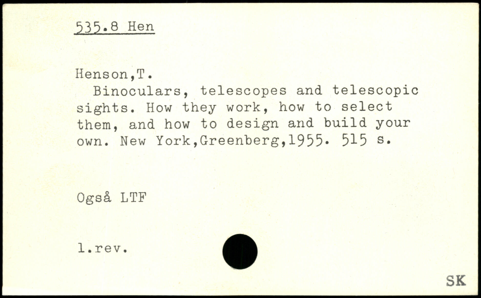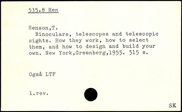 Binoculars, telescopes and telescopic sights. How they work, how to select them, and how to design and build your own.
