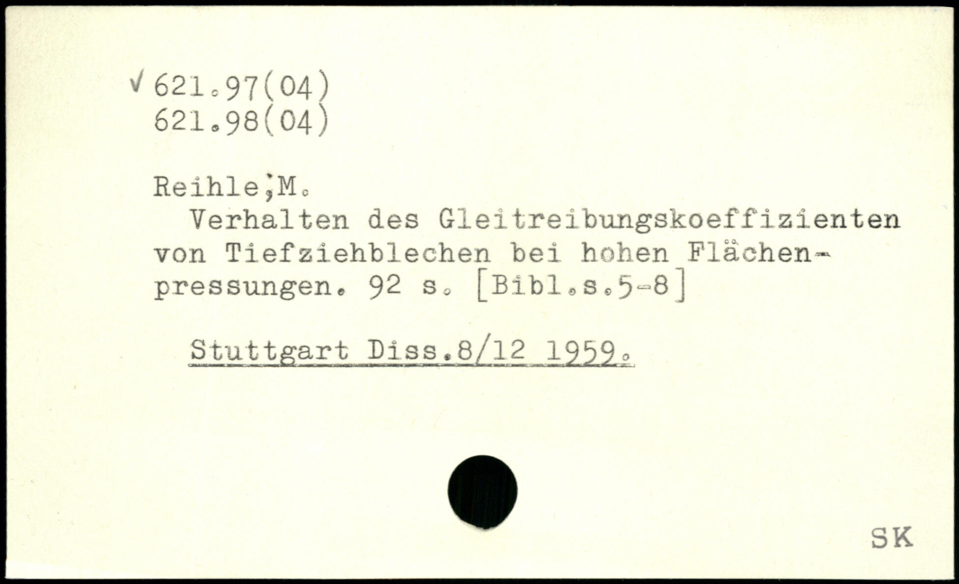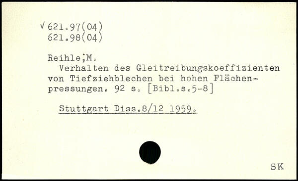 Reihle JM. Verhalten des Gleitreibungskoeffizienten von Tiefziehblechen bei hohen Flächen-Pressungen,, 92