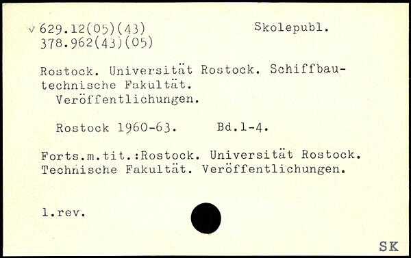 Rostock. Universität Rostock. Schiffbau-technische Fakultät. Veröffentlichungen. Rostock 1960-63.