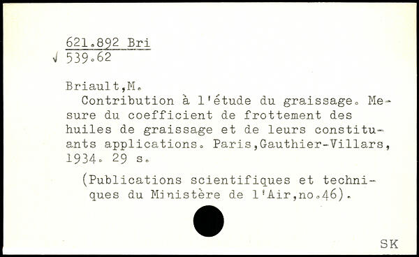 Contribution à l'étude du graissage. Mesure du coefficient de frottement des huiles de graissage et de leurs constituants applications.