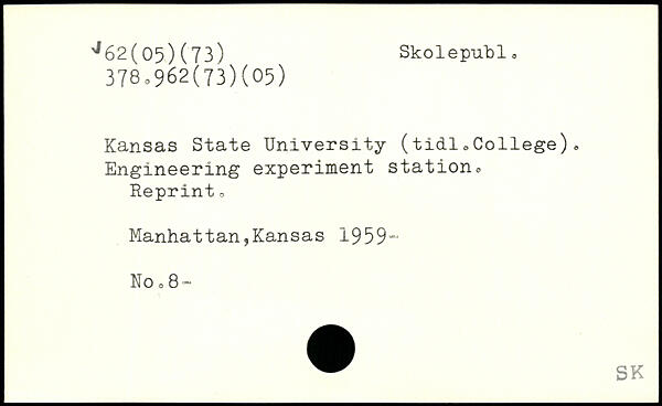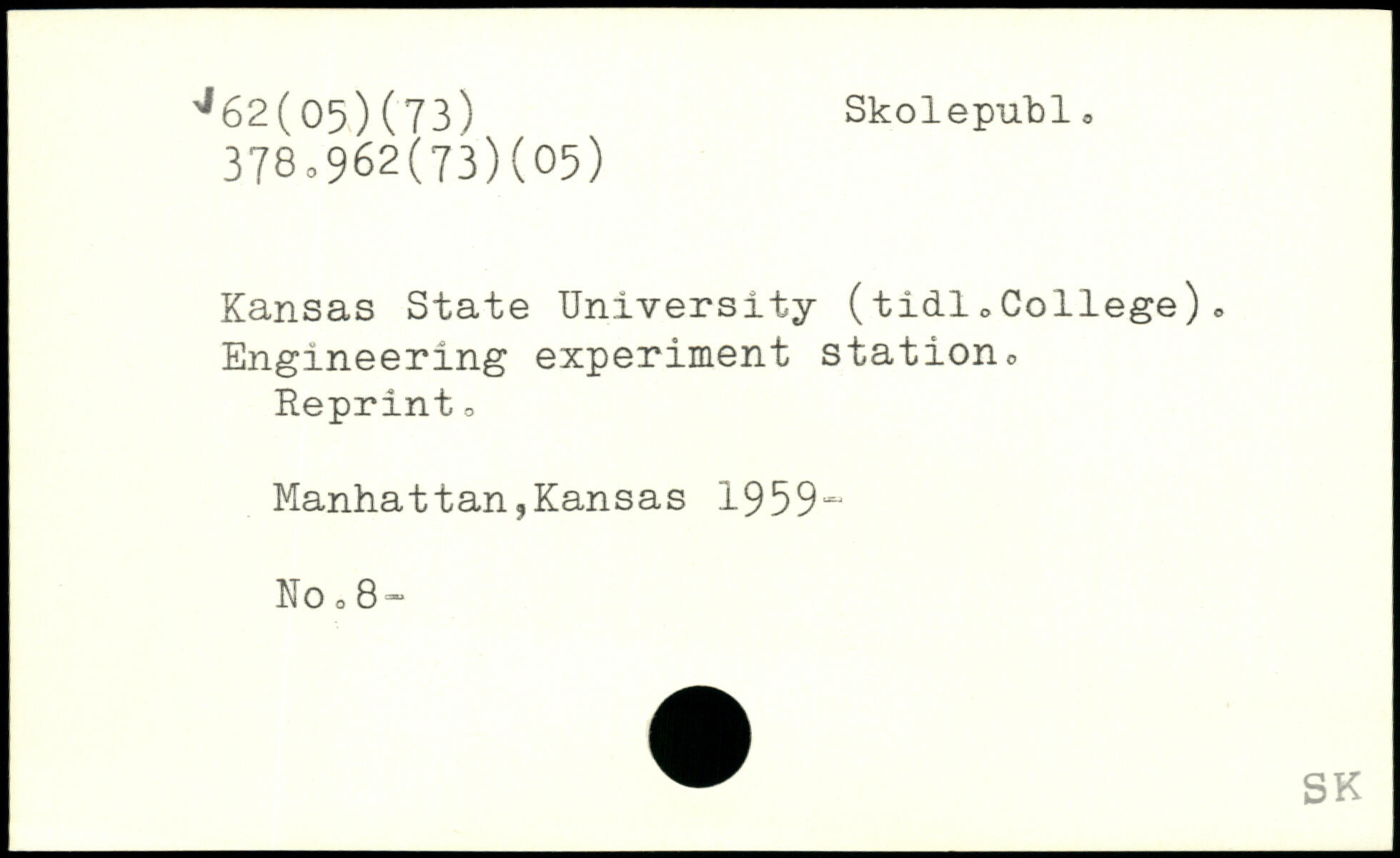 Kansas State University (tidl,College). Engineering experiment station® Reprint, Manhattan,Kansas 1959-No ® 8