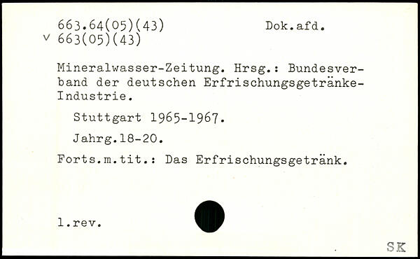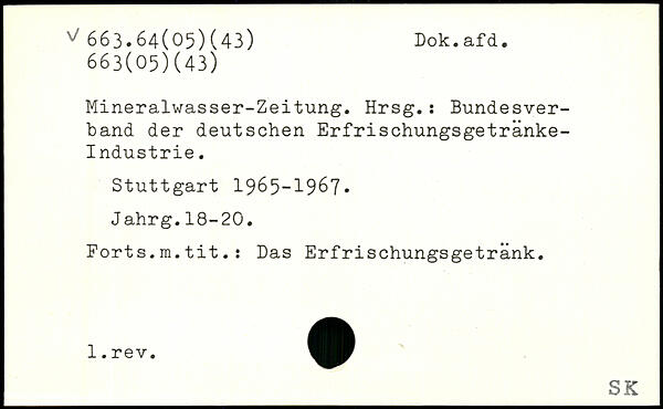 Mineralwasser-Zeitung. Hrsg.: Bundesverband der deutschen Erfrischungsgetränkeindustrie.