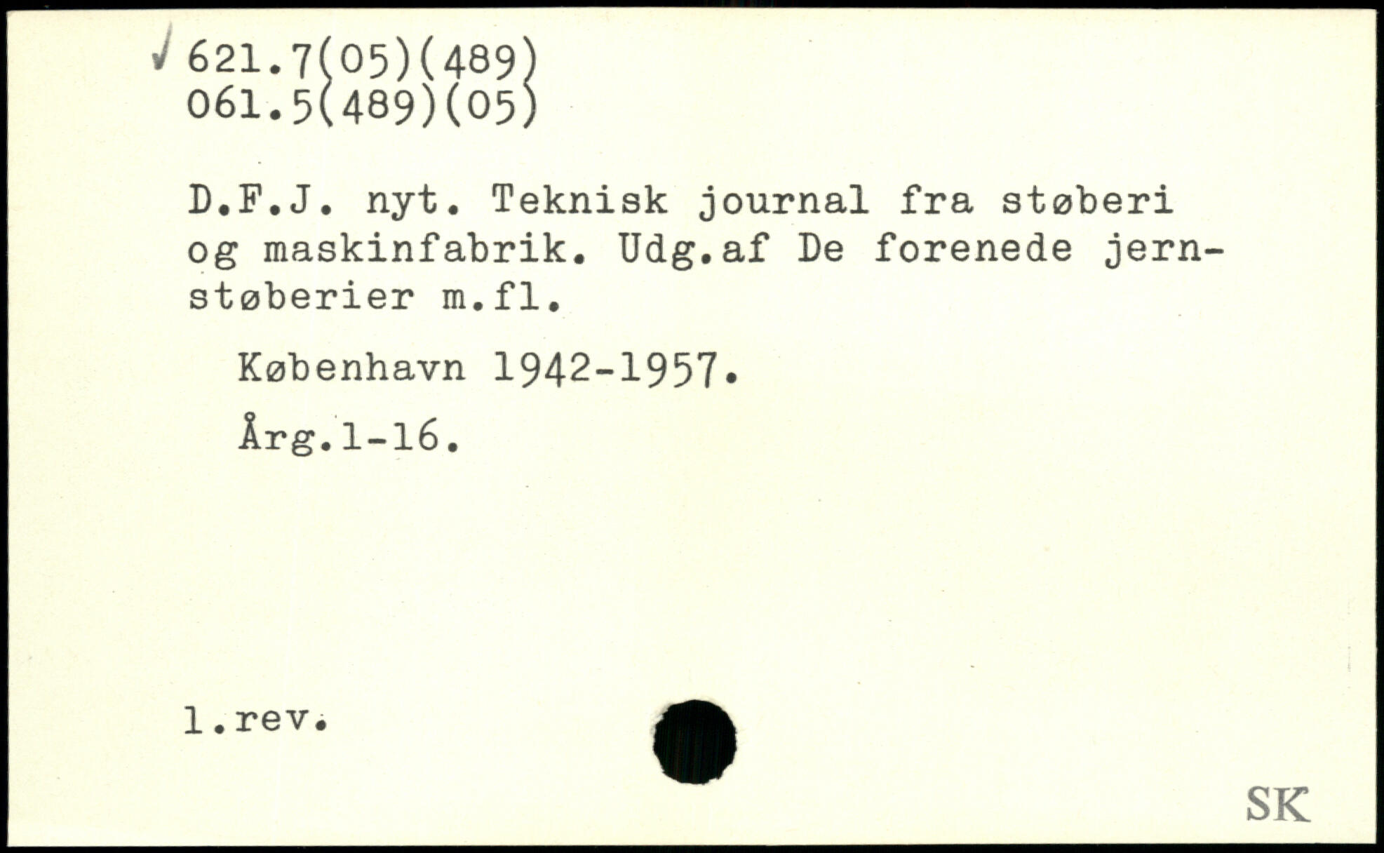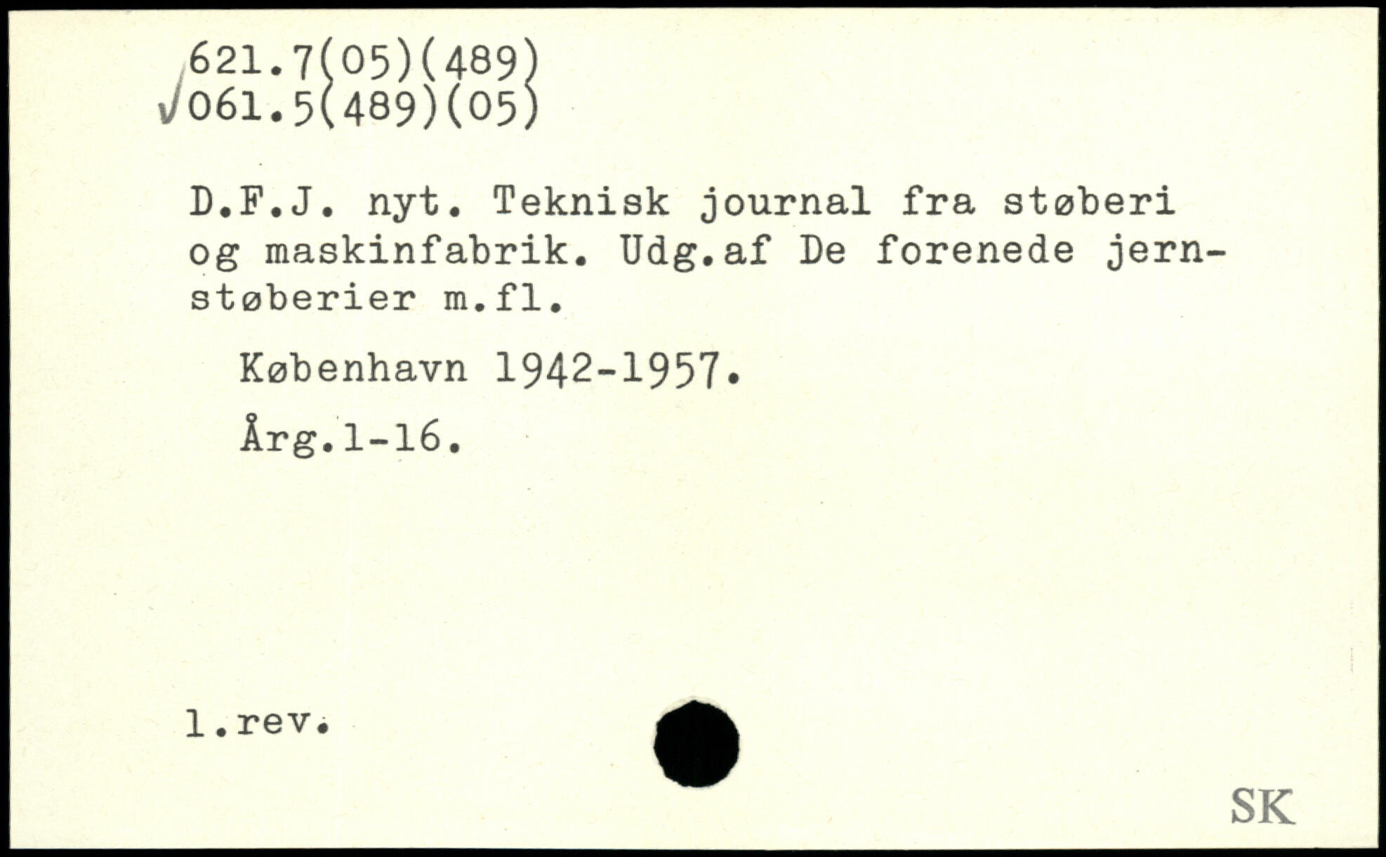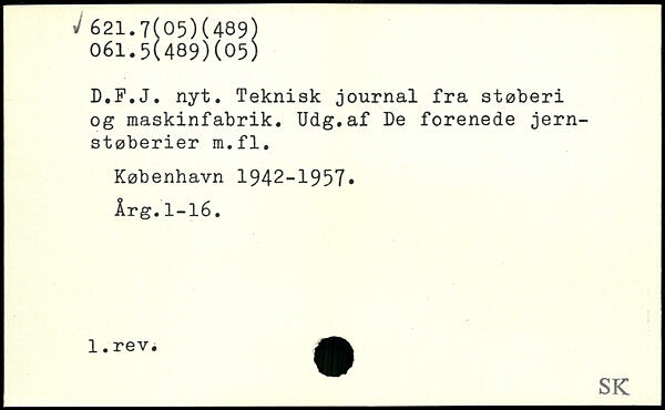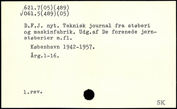 D.F.J. nyt. Teknisk journal fra støberi og maskinfabrik. Udg.af De forenede jernstøberier m.fl.