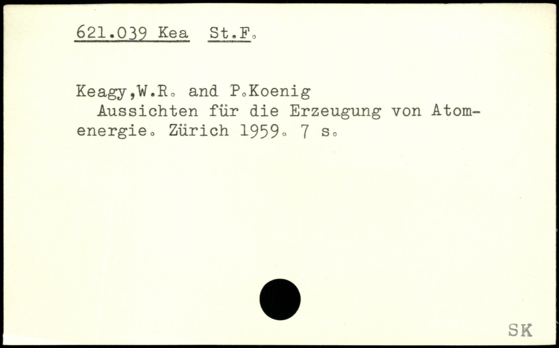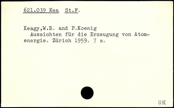Keagy,W.R, and PoKoenig Aussichten für die Erzeugung von Atomenergie o Zürich 1959-