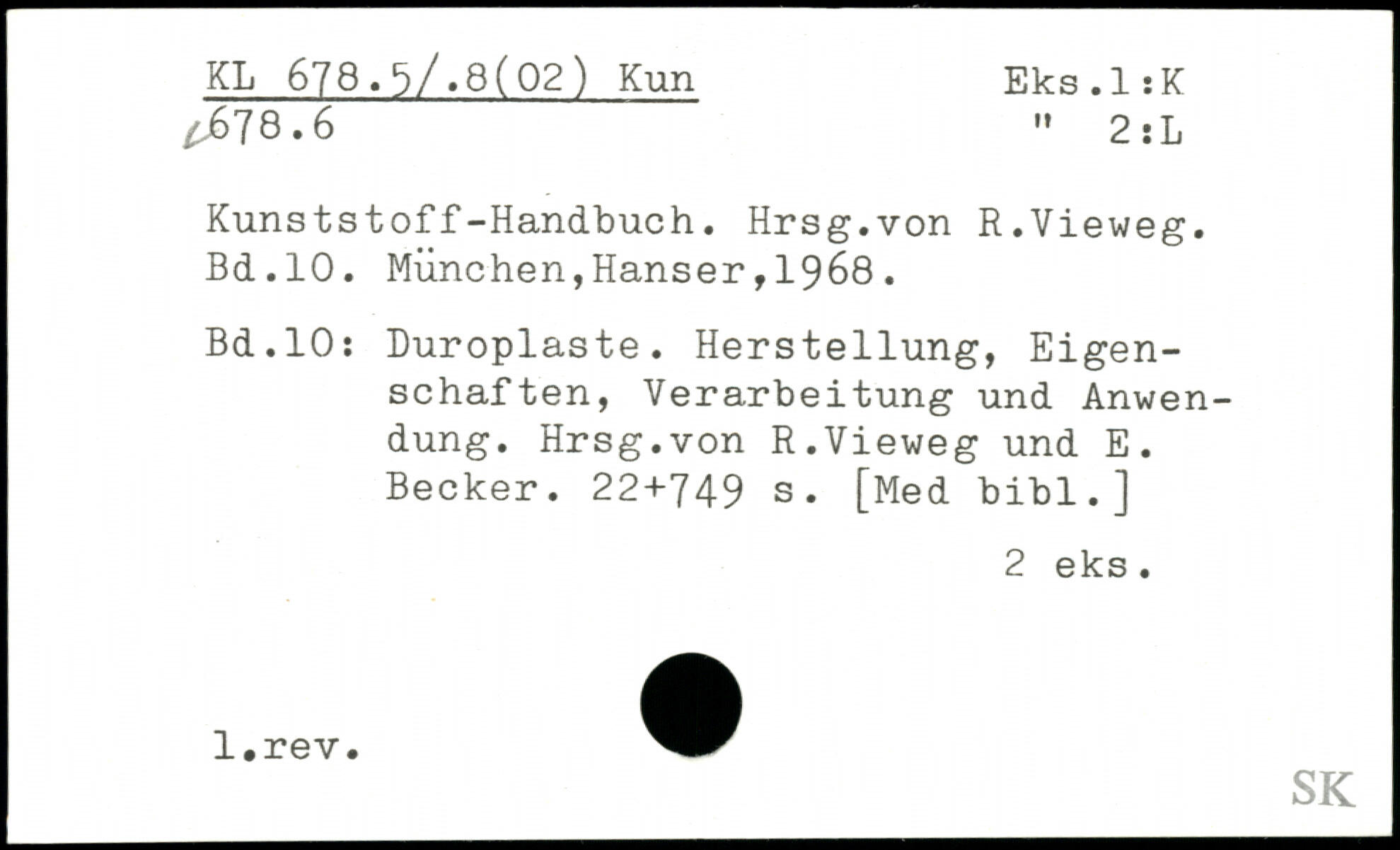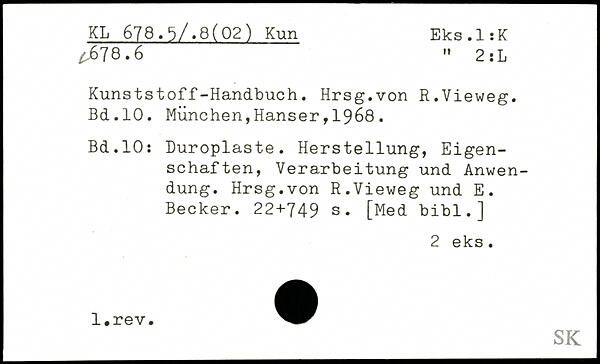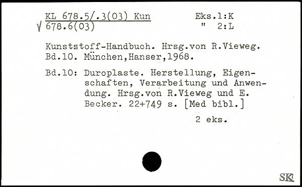 Kunststoff-Handbuch. Hrsg.von R.Vieweg.