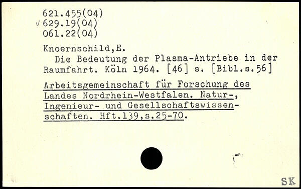 Die Bedeutung der Plasma-Antriebe in der Raumfahrt. Köln 19&4, [46] s.