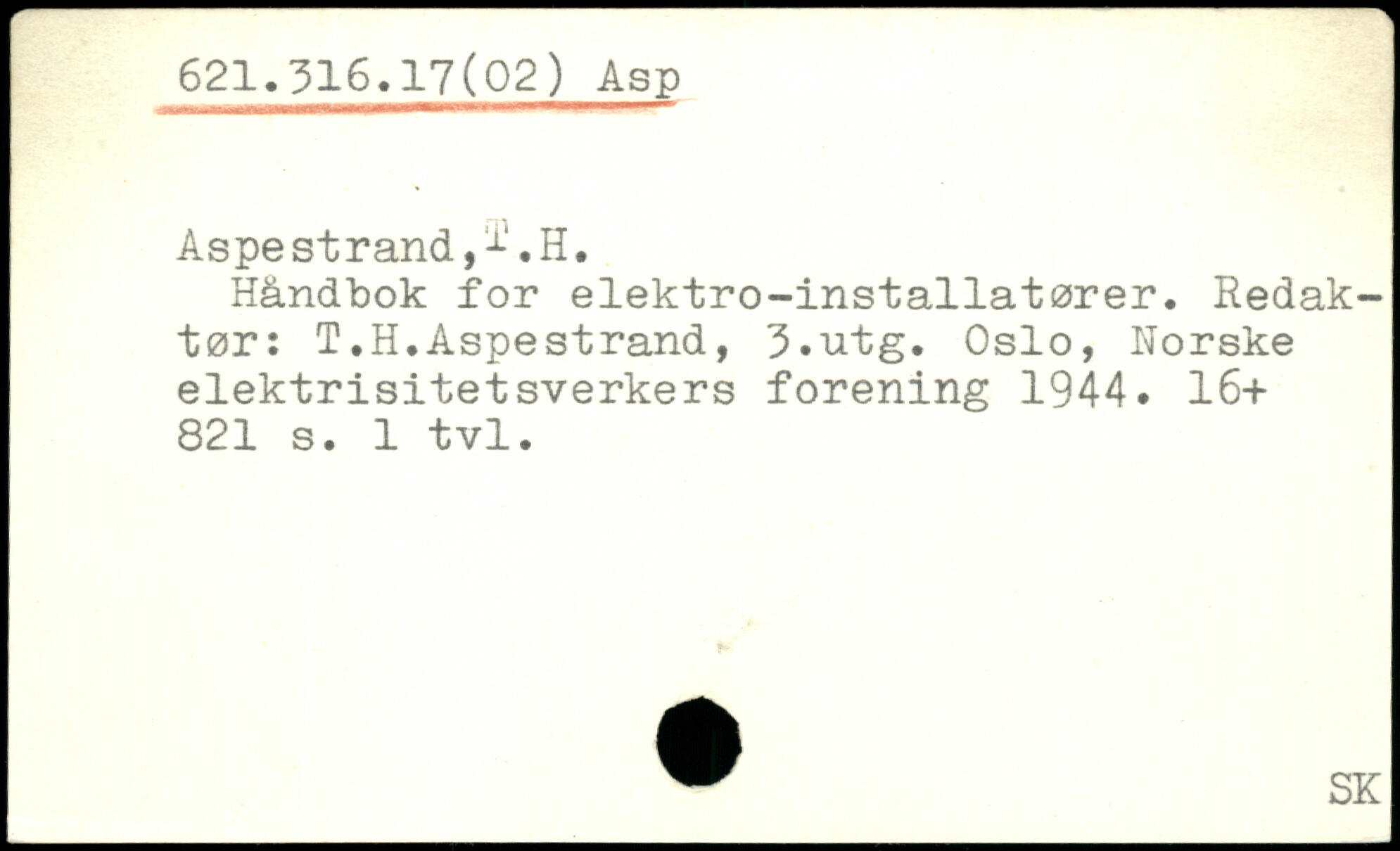 Håndbok for elektro-installatører. Redaktør: T.H.Aspestrand, 3.utg. Oslo, Norske elektrisitetsverkers forening 1944. 16+