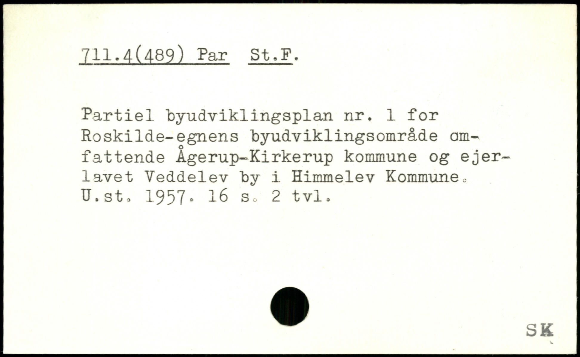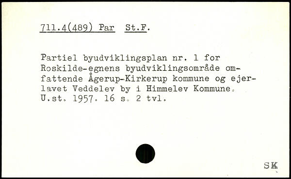 Partiel byudviklingsplan nr. 1 for Roskilde-egnens byudviklingsområde omfattende Agerup-Kirkerup kommune og ejerlavet Veddelev by i Himmelev Kommune, U.st. 1957.