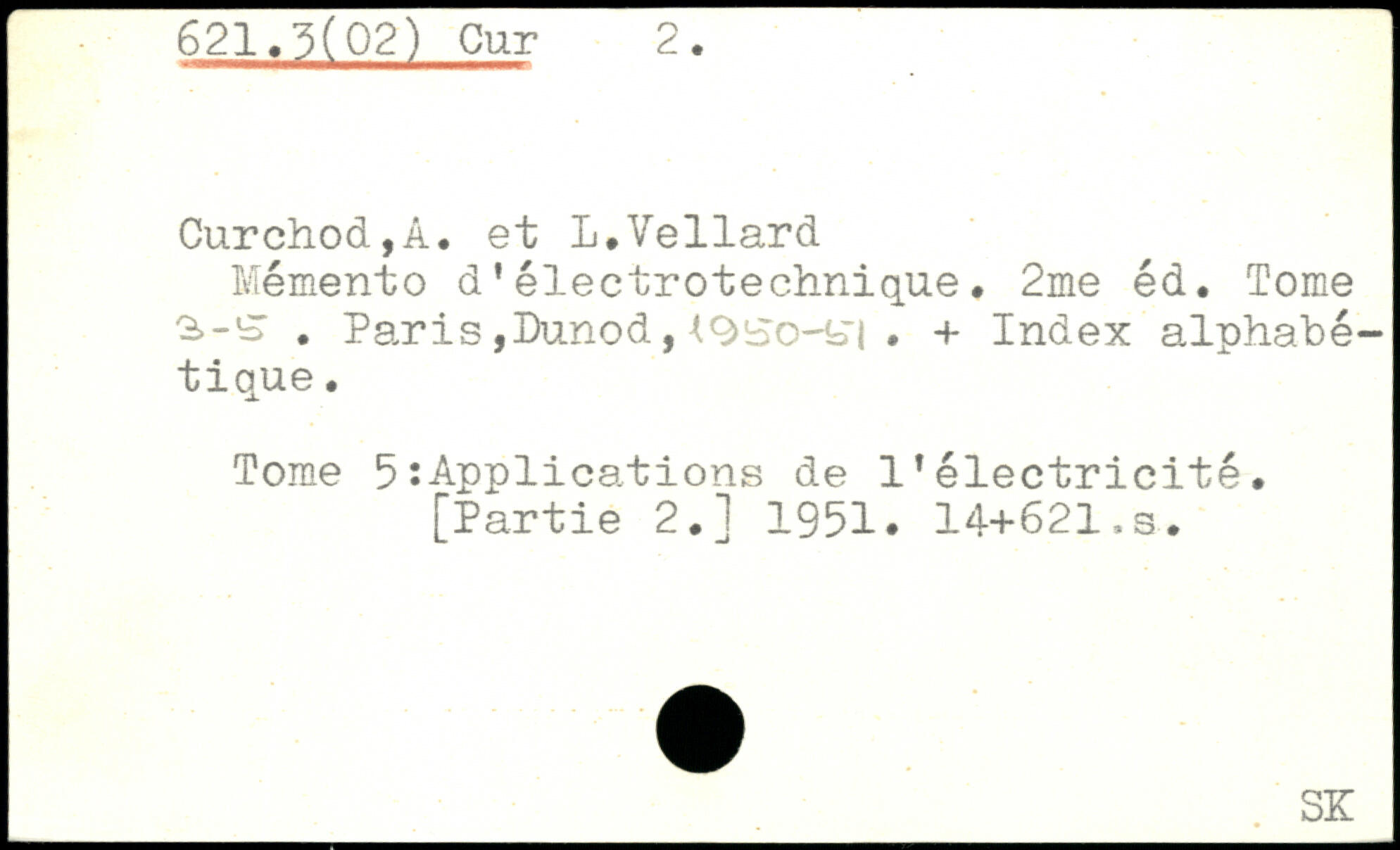 Mémento d’électrotechnique, 2me éd. Tome. Paris ,Dunod, , + Index alphabé tique. Tome 5 :Applications de l'électricité, [Partie 2.] 1951. 14+621.s.