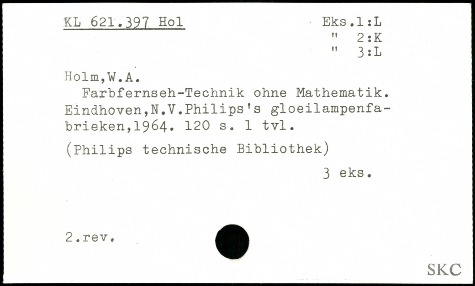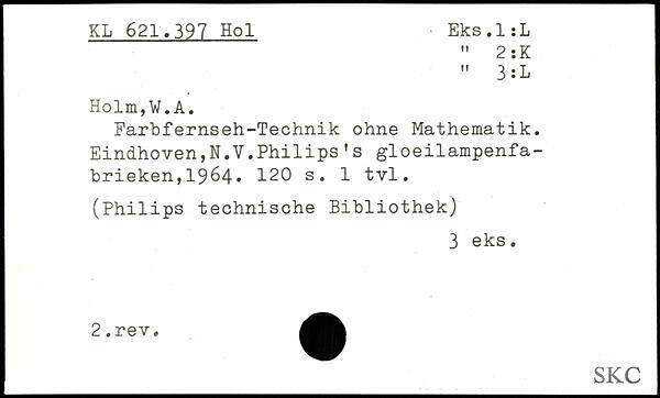 Farbfernseh-Technik ohne Mathematik. Eindhoven,N.V.Philips 's gloeilampenfa- brieken,1964. ^-^