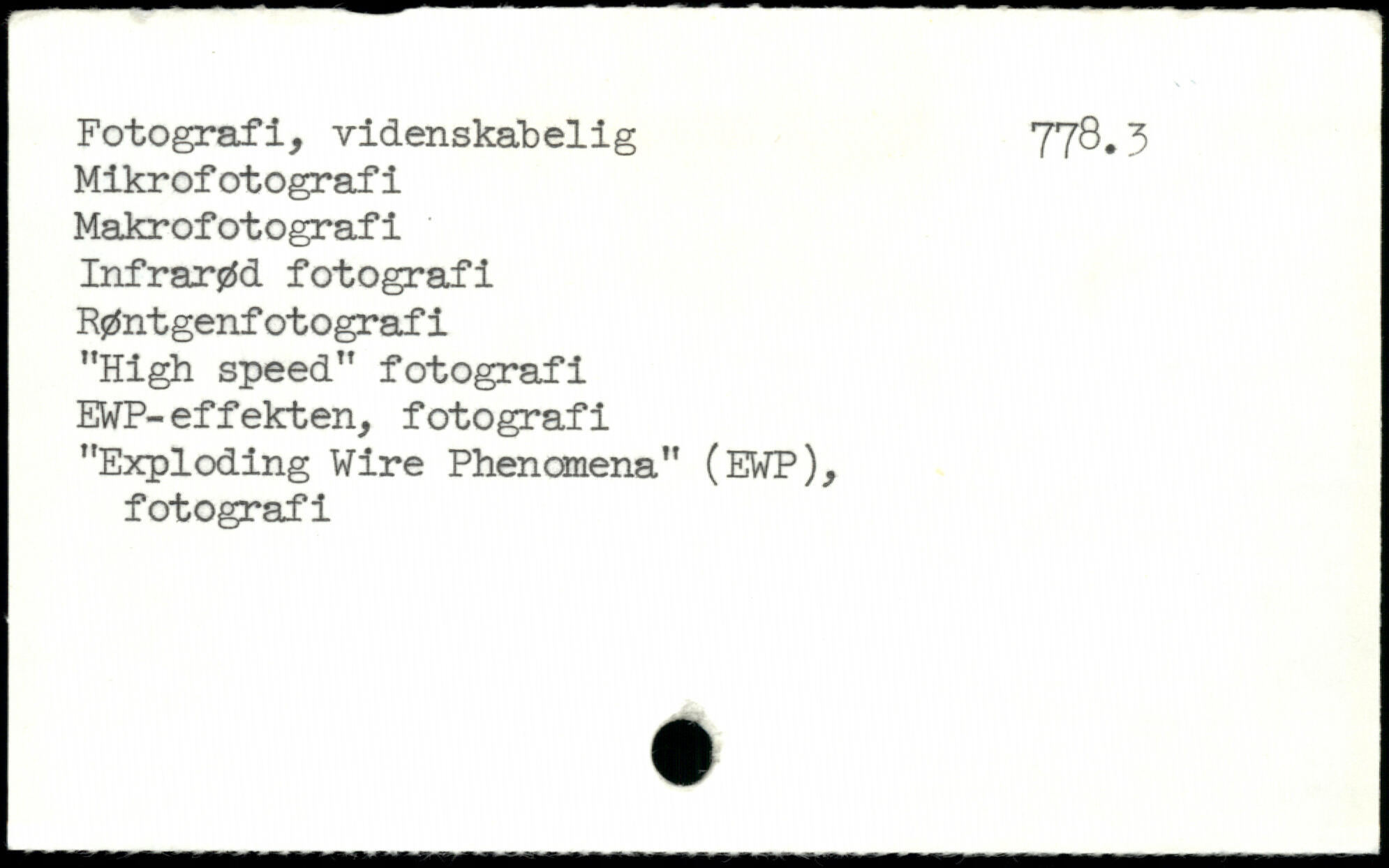 — IB — — -- ™ ------- — “ - 1 —' Fotografi, videnskabelig 778.3 Mikrofotografi Makrofotografi Infrarød fotografi Røntgenfotografi "High speed" fotografi EWP-effekten, fotografi "Exploding Wire Phenomena" (EWP), fotografi
