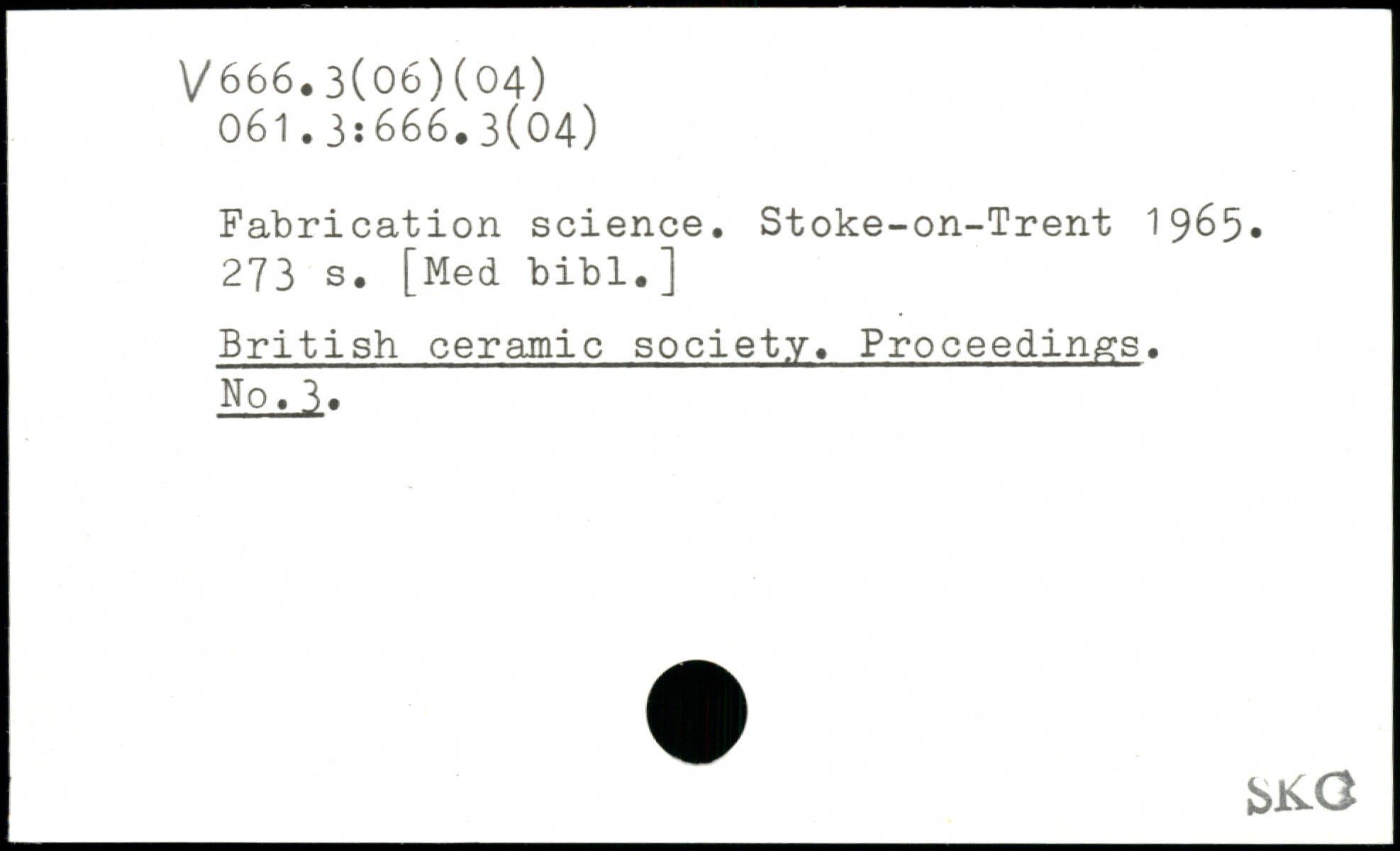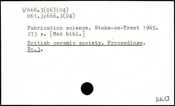 Fabrication science. Stoke-on-Trent 1965.