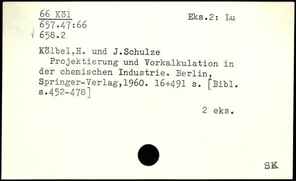 Projektierung und Vorkalkulation in der chemischen Industrie.