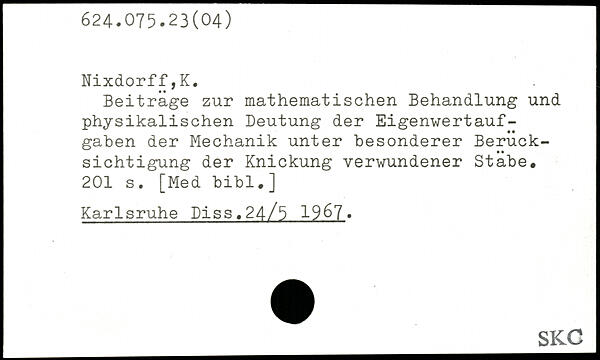 Beiträge zur mathematischen Behandlung und physikalischen Deutung der Eigenwertaufgaben der Mechanik unter besonderer Berücksichtigung der Knickung verwundener Stabe