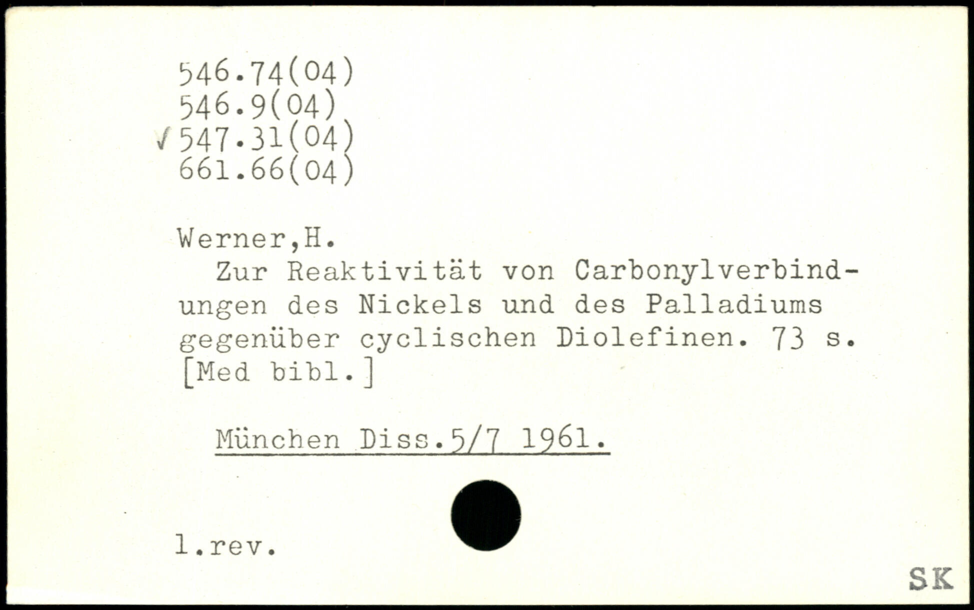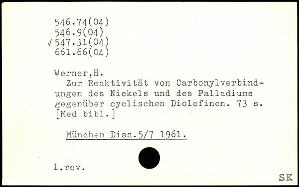 Zur Reaktivität von Carbonylverbindungen des Nickels und des Palladiums gegenüber cyclischen Diolefinen.