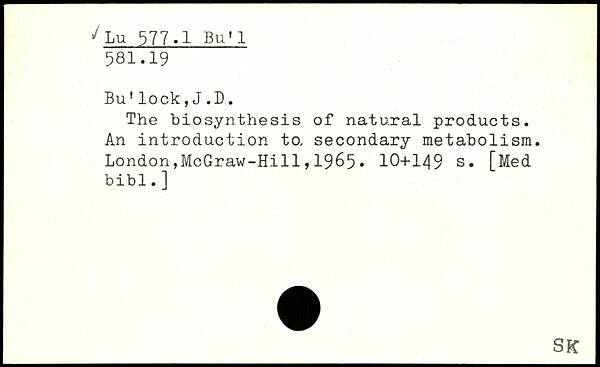 Bu1 lock,J.D. The biosynthesis of natural products. An introduction to, secondary metabolism.