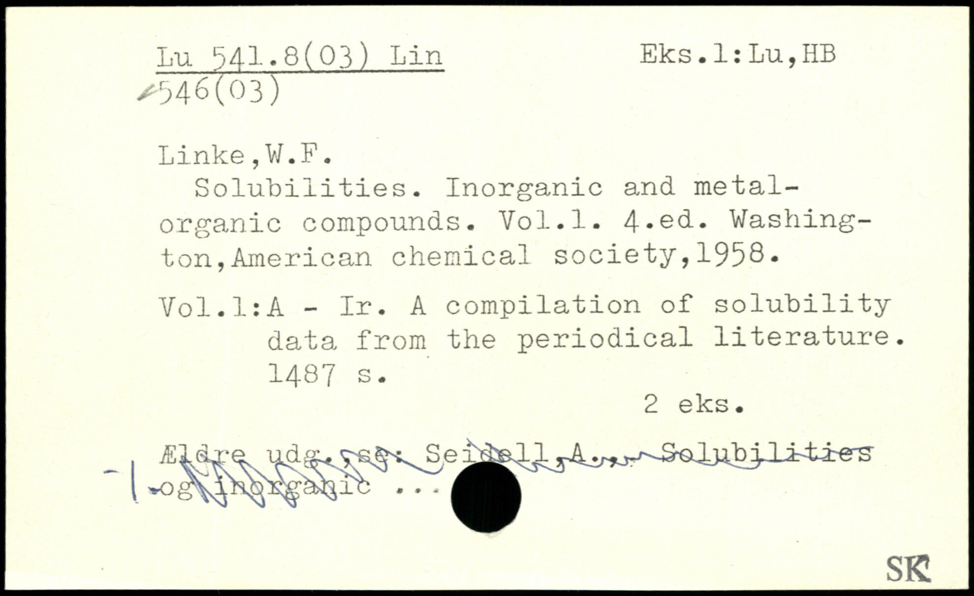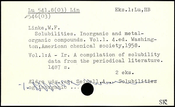 Solubilities. Inorganic and metal-organic compounds. Vo 1.1. 4-ecL.